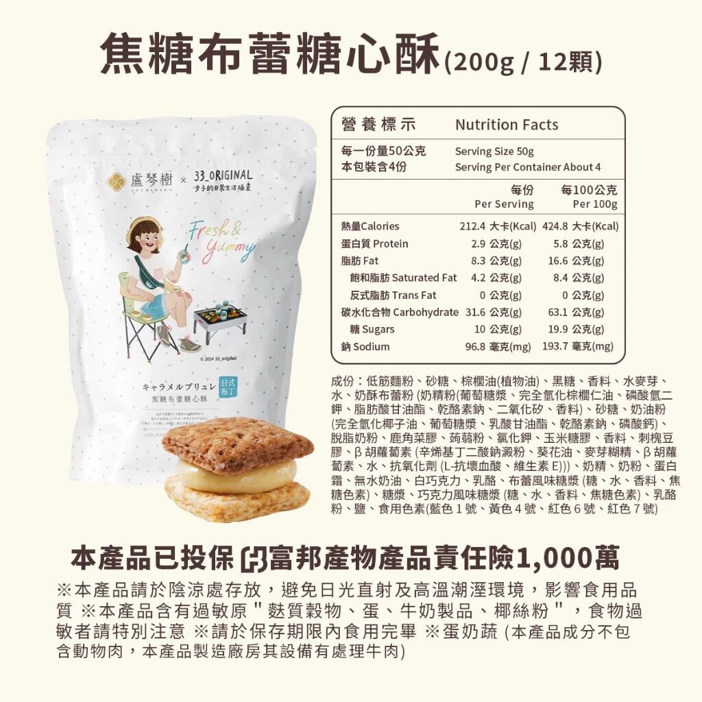 盧琴樹(ルチンシュ) ヌガーサンド キャラメルブリュレ風味|盧琴樹(LUCHINSHU) 焦糖布蕾糖心酥 200g|12パック入り(個包装)