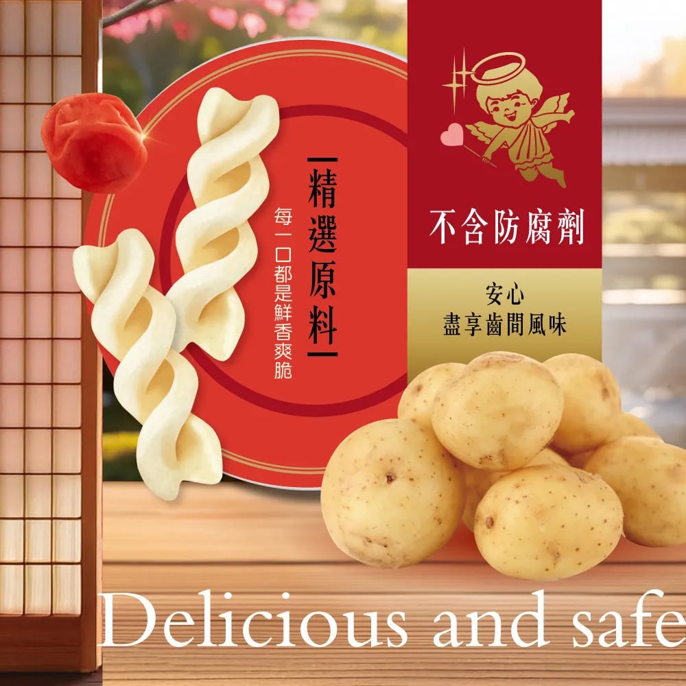 サクサクとした食感が楽しいスパイラルポテトスナックに、甘酸っぱくクセになる梅粉の風味が絶妙にマッチしています。