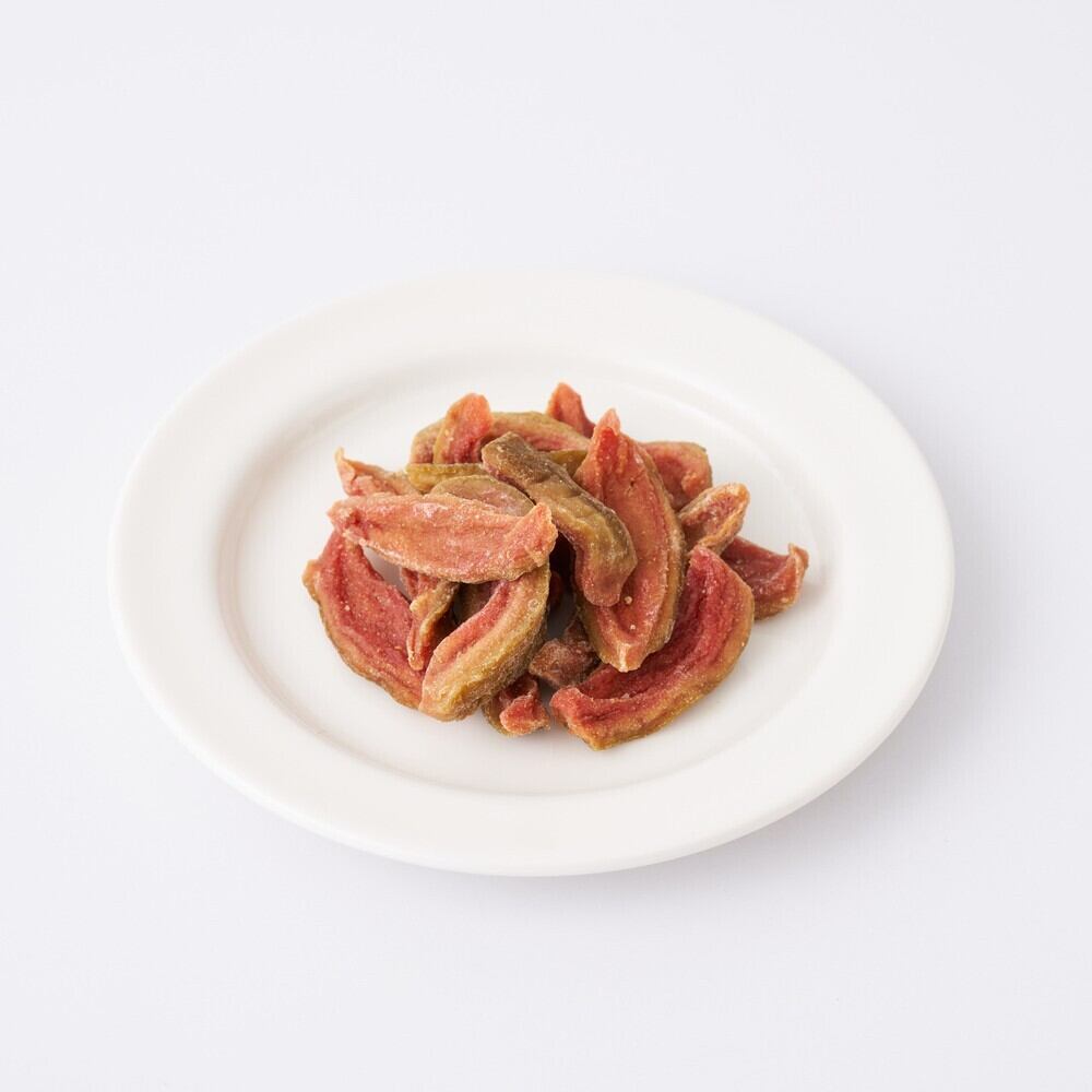 紅心グアバは特製の糖液に漬け込み、低温で乾燥させることで美味しさを凝縮しています。しっかりとした果肉の食感と濃厚な甘い香りをお楽しみいただけます。