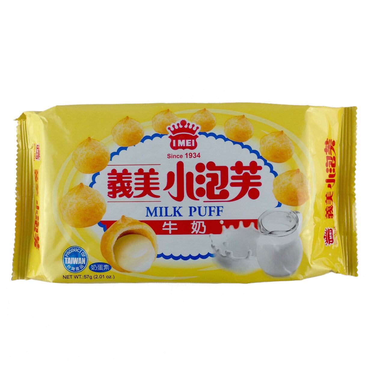 台湾の代表的な人気お菓子 - ミルクパフ(義美小泡芙 牛奶)。