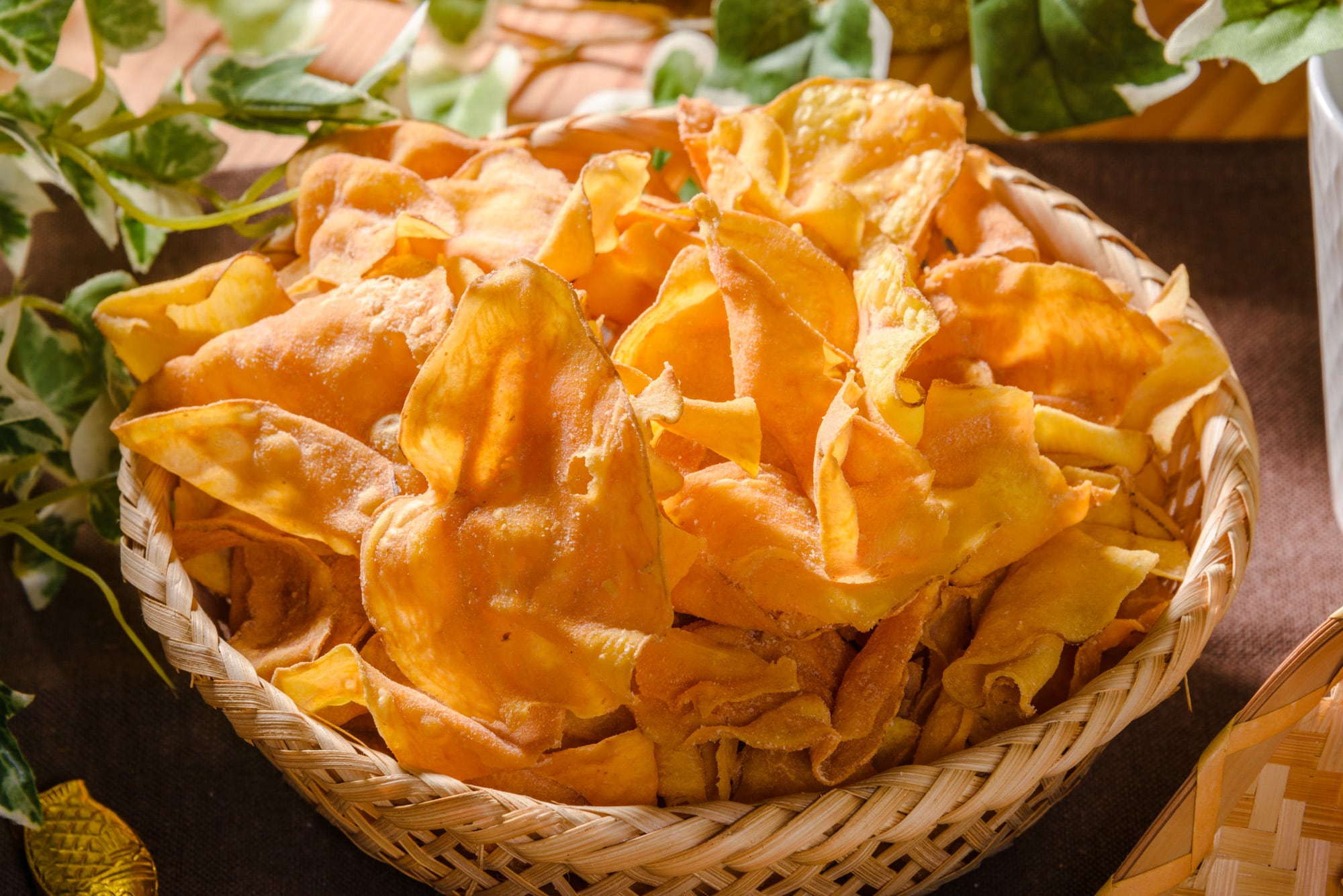 「地瓜酥」は台湾の台農57号さつまいもを薄切りにして揚げてからシロップをかけた。香ばしくて歯触りがよく、お茶のお供にぴったり!