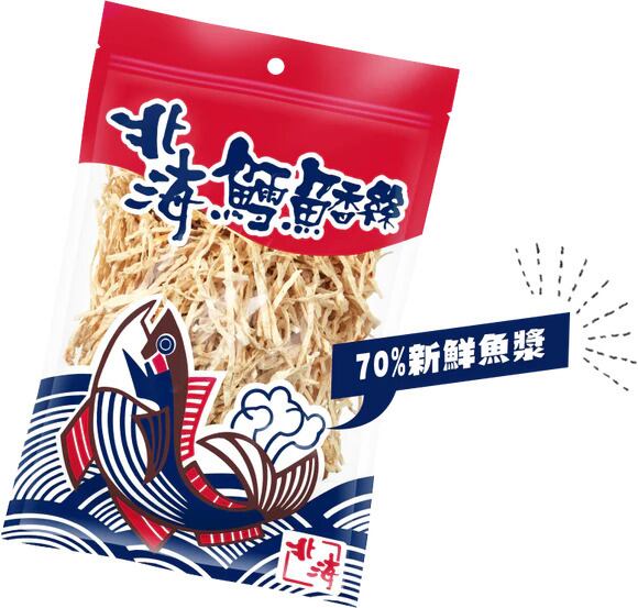 台湾で見慣れたおつまみ、北海鱈魚香絲。ビールとの相性抜群!日本人の口にもとても良く合うお茶受けやお酒のお供、そしておやつとして人気のお菓子。 ロングセラー駄菓子の「タラタ〇してんじゃねーよ」に似ており、鱈の旨味とわずかにピりっとする後味で、なかなか手が止まらなくなる美味しさ。
