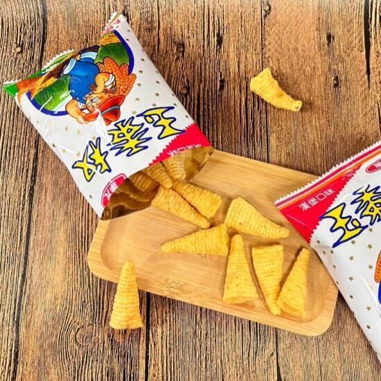 親しみやすいキャラクター、「トウモロコシおじさん」が特徴の台湾風とんがりコーンは、今年で40周年を迎えました。日本より少し遅れてトウモロコシおじさんが誕生しましたが、クラシックなハンバーガー風味は今でも保たれており、指に着けて食べたり遊んだりした思い出は、私たち共有の記憶です。現在も全ての年齢層に愛されるクラシックなスナックの一つです。日本にはないハンバーガー風味は、ぜひ一度お試しください!